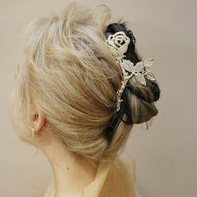 ローズメタル ヘアピン 幾何学模様 パール ラインストーン ヘアピン カニ ヘアアクセサリー ジュエリー 真珠 Wor1536841703