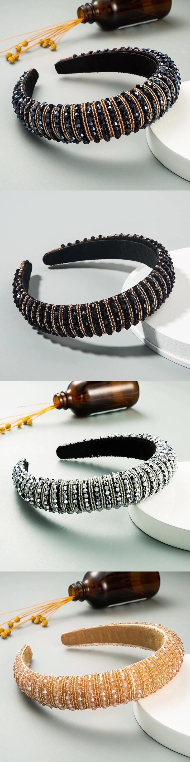シャイニーフルラインストーンカチューシャカチューシャ弾性パッド入りヘアバンドシャイニーヘアバンド女性帽子 エラスティック 伸縮 ヘアアクセサリー Wor6137465403