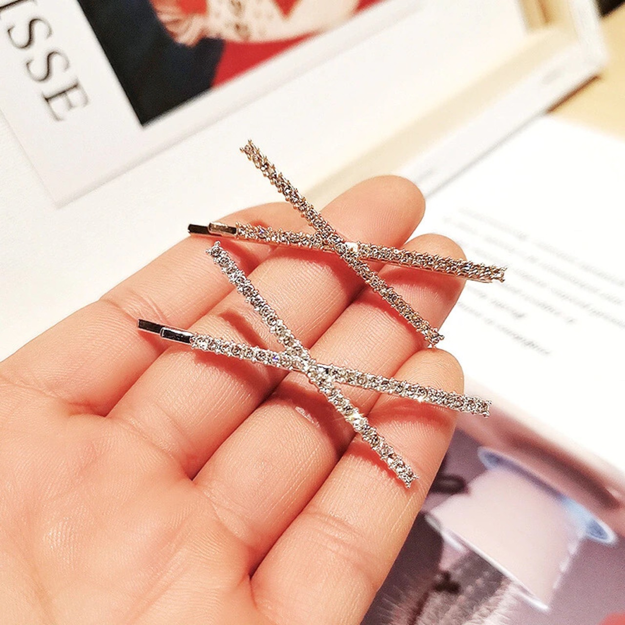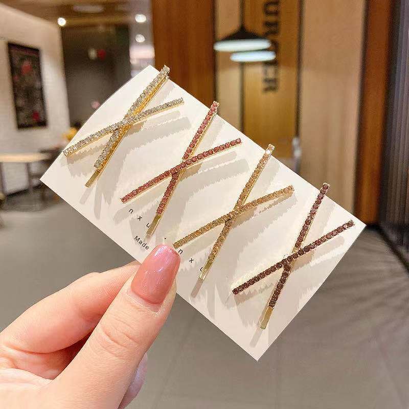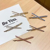 1 ピースセットミニマルなラインストーンクロスヘアクリップワンワードクリップ前髪サイドクリップトップクリップ女性頭飾りヘアアクセサリー Wor6310379697