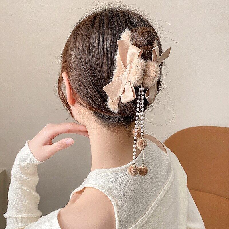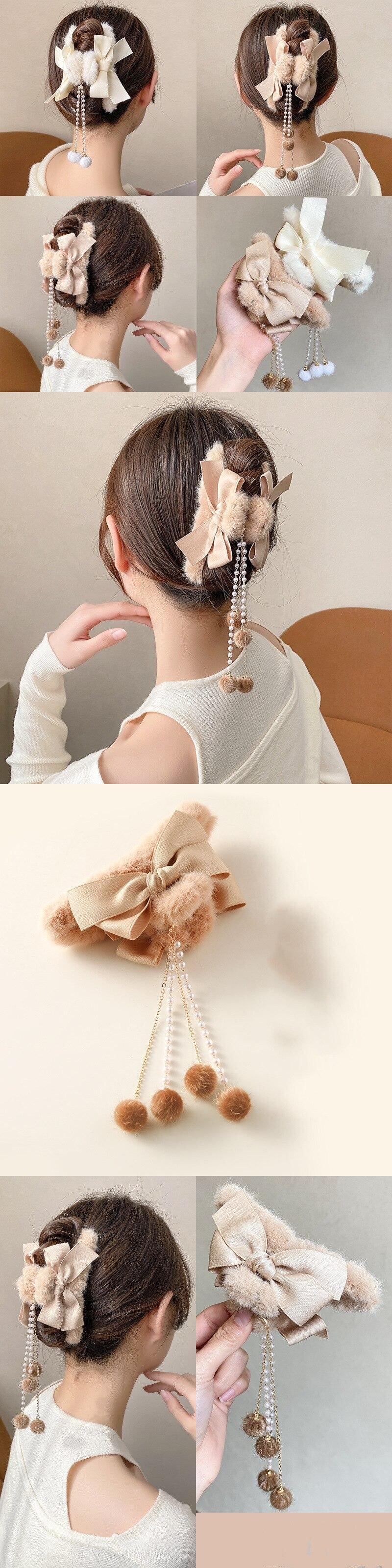 2022 パール Tel 弓ぬいぐるみ把握クリップ大秋と冬ポニーテールサメクリップカニクリップ頭飾りヘアカード リボン オータム 秋物 ウィンター 冬物 真珠 Wor78112597003