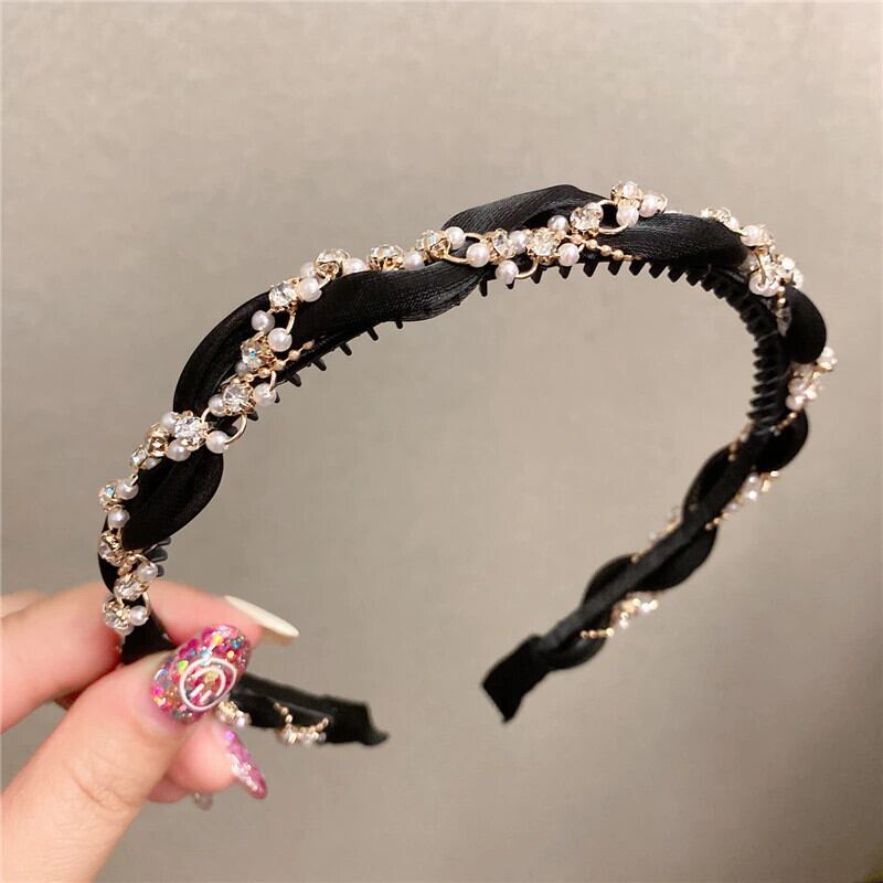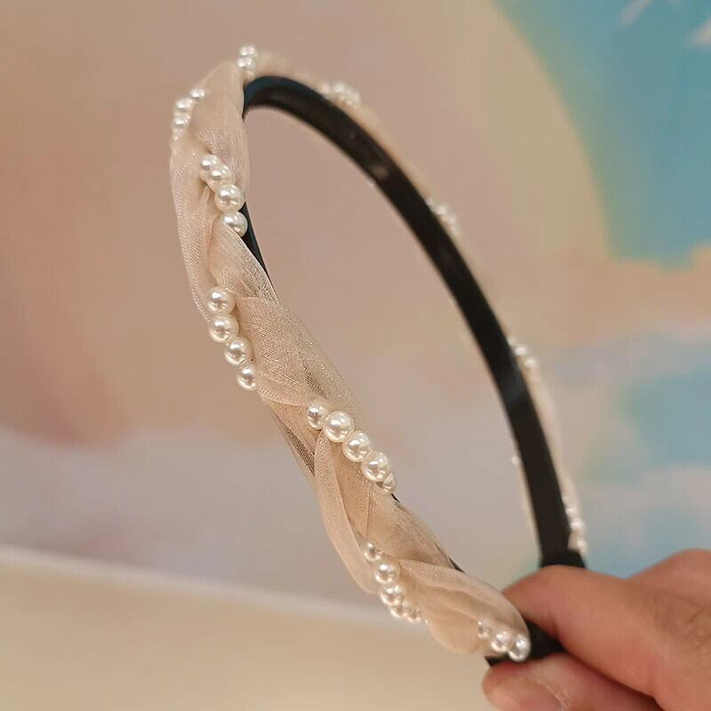 レトロパールプレスヘアバンド女性のクロス編組オーガンザカチューシャガールズヘアアクセサリーカチューシャ 真珠 Wor65598314978