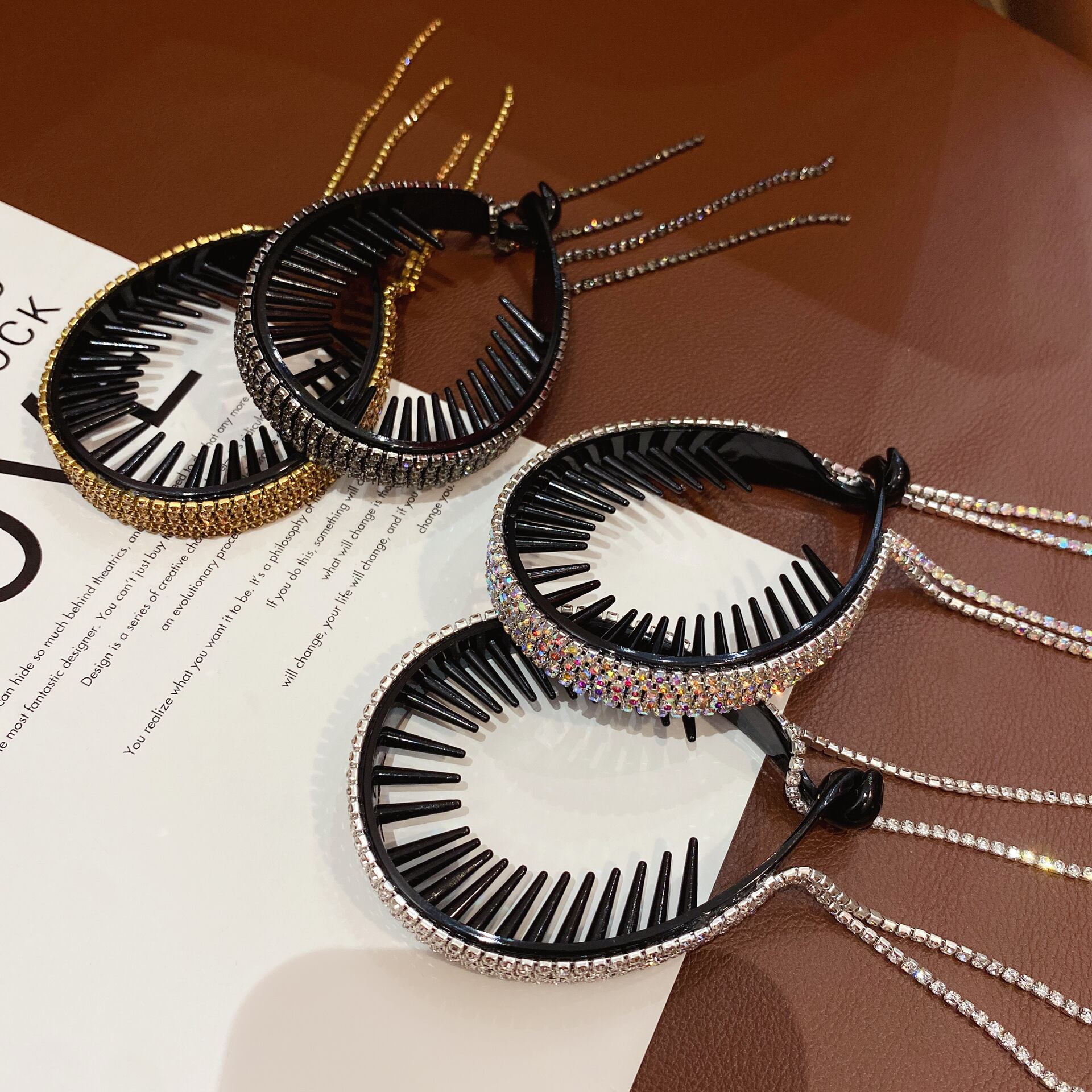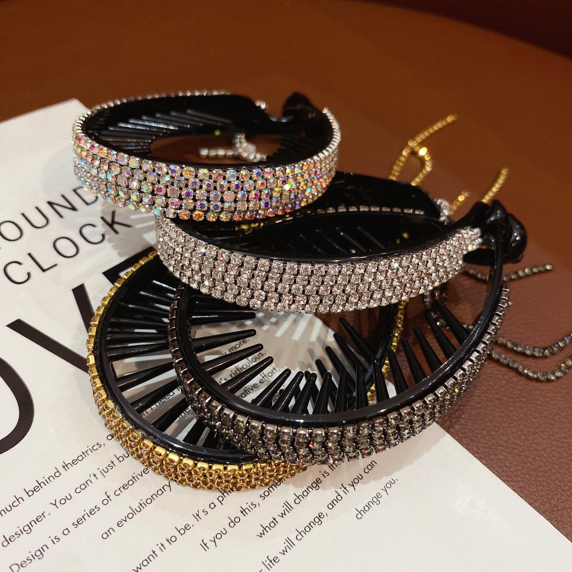 ラインストーンヘアバンド女性ポニーテールヘアピンスタイルヘアバンドフープバナナクリップヘアアクセサリー Wor68601888601
