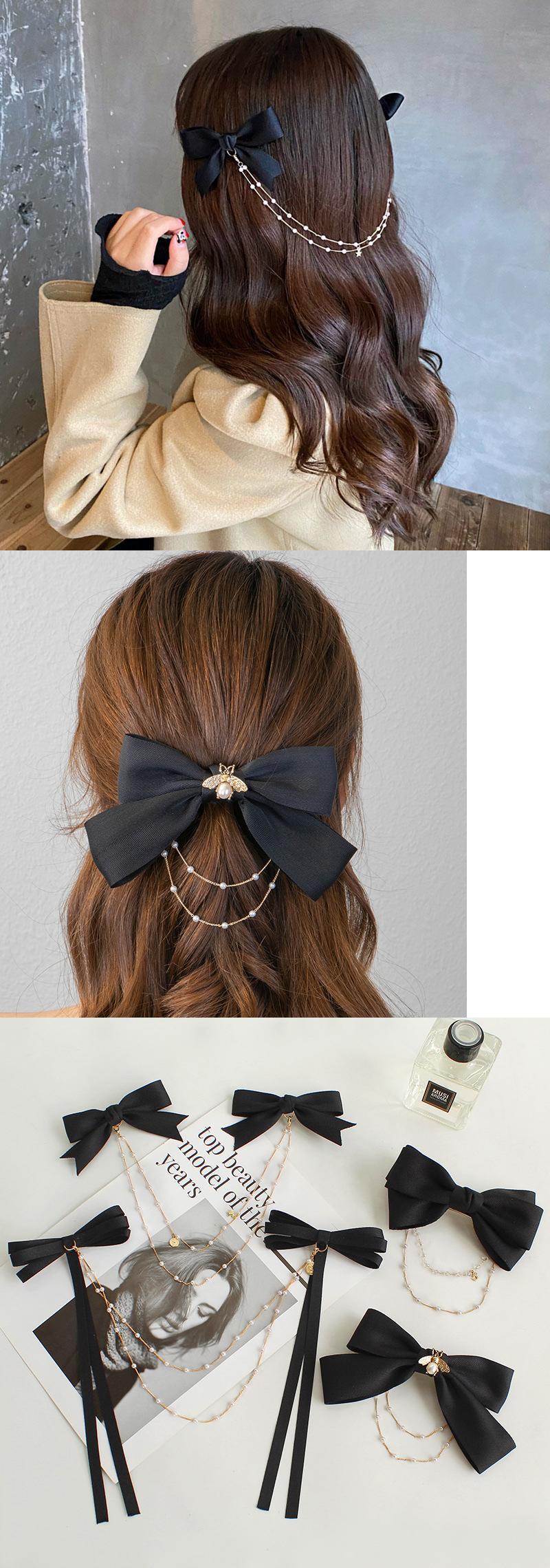 女性弓パールチェーンヘアピン甘い髪飾りカチューシャヘアクリップ女性のヘアアクセサリー リボン 大人ガーリー スウィート キュート カジュアル ヘアバンド 真珠 Wor4229264977