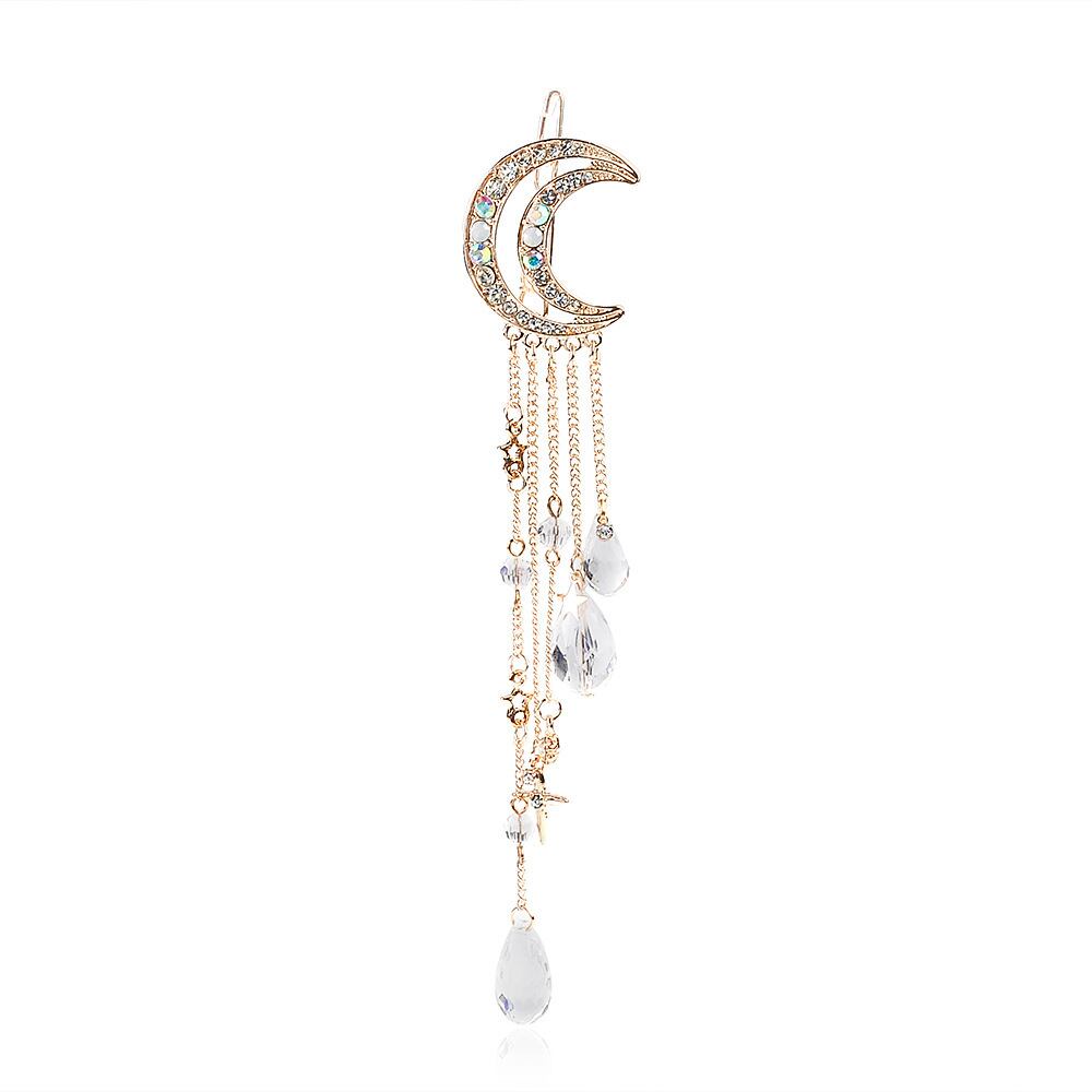 ヘアクリップ クリスタル ラインストーン ムーンテル ヘアピン 五芒星 ペンダント ヘアアクセサリー Wor21935330816