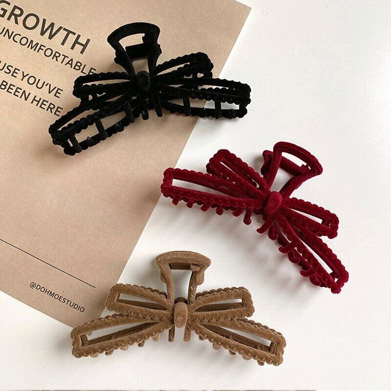 レトロなベルベットの弓グラブクリップ髪の爪秋と冬のポニーテール編組髪飾りヘアクリップ頭飾り リボン オータム 秋物 ウィンター 冬物 Wor10806172738