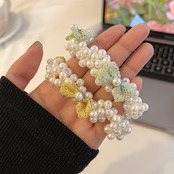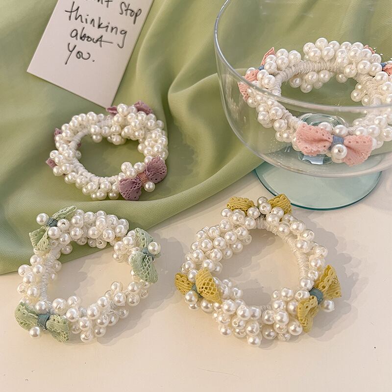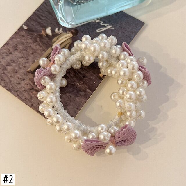 ヘアロープパールヘアネクタイ弾性ヘアバンドビーズ女の子scrunchiesゴムバンドポニーテールホルダーヘアアクセサリー エラスティック 伸縮 真珠 Wor37155841607
