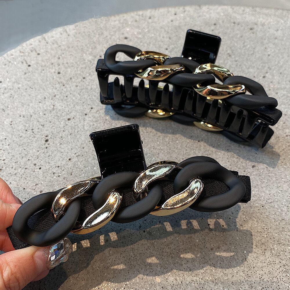 Hair Claw つや消し チェーン キャッチクリップ シンプルで上品なヒットカラー 大型シャーククリップ 網 赤 後頭部かんざし レッド ヘアピン エレガント Wor92179247604