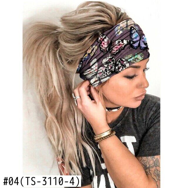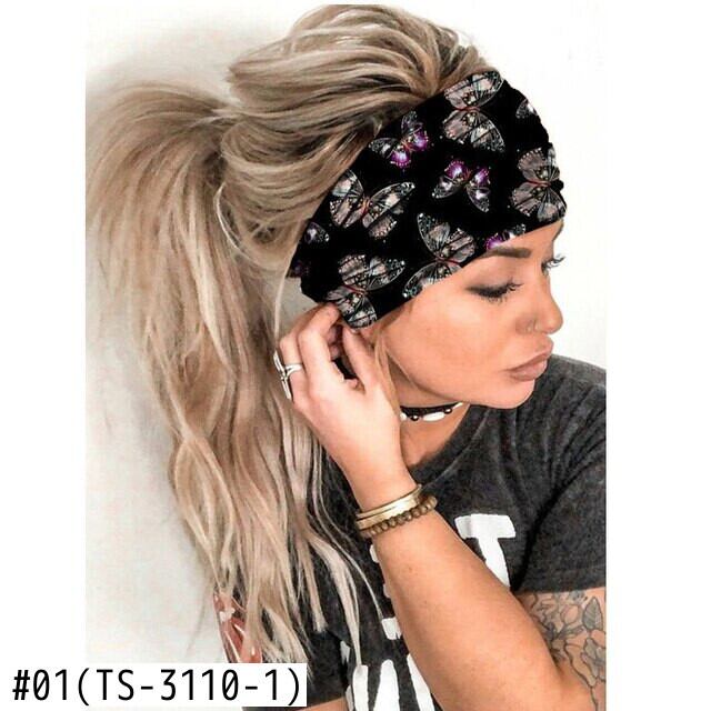 蝶プリントヘアバンドターバン幾何つば広ターバン女の子弾性カチューシャヘアアクセサリー エラスティック 伸縮 Wor97504609337