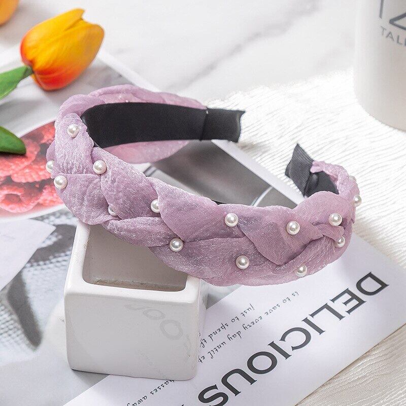 2022 パールツイストブレイドマルチカラーヘアフープ女の子ヘアピンヘッドバンドボールパーティーウェディングヘアアクセサリー ヘアバンド 真珠 Wor1283522729