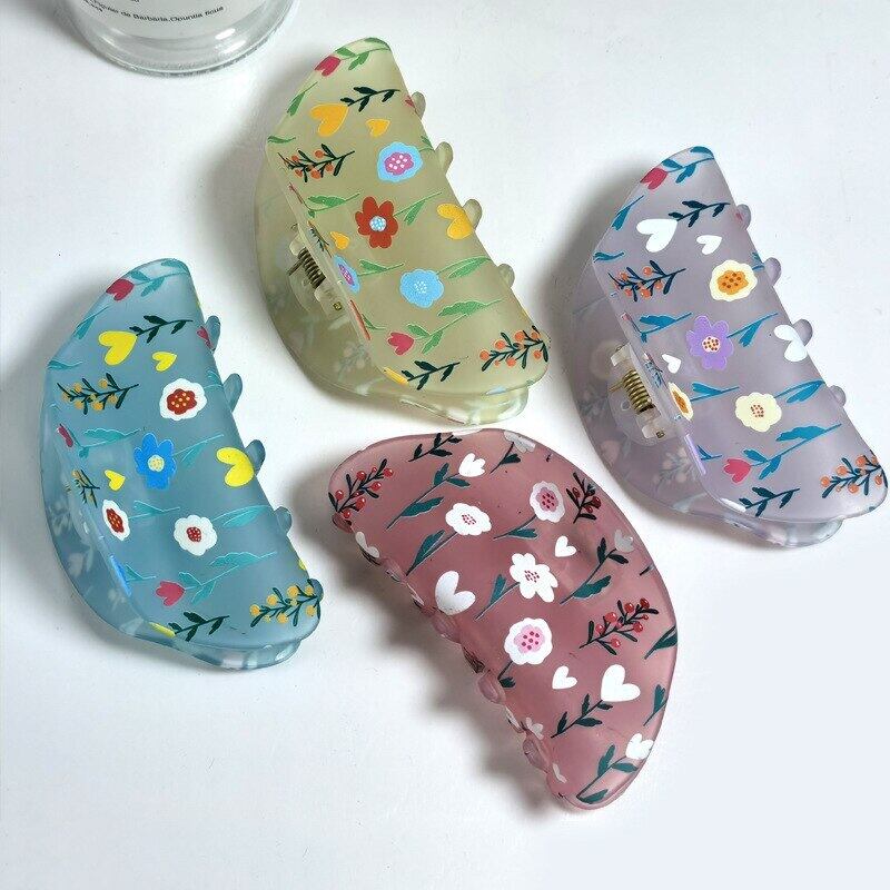 レトロつや消し半円形花柄グリップクリップ素朴なバスの髪の爪浴室クリップサメクリップヘアアクセサリー Wor65591332698