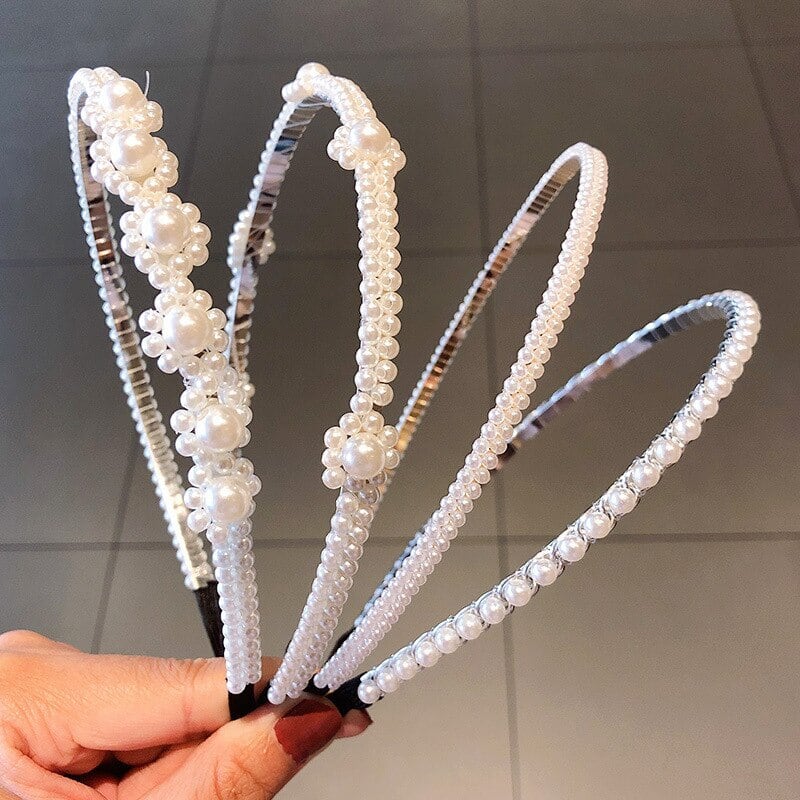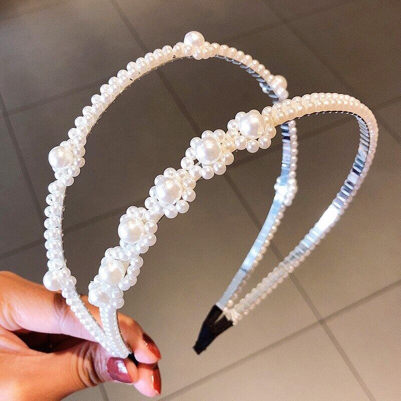 シャイニーパールヘアバンドメタルヘッドバンド弾性ヘアアクセサリーブライダルギフト結婚披露宴ジュエリーヘッドギア エラスティック 伸縮 真珠 Wor50243574867