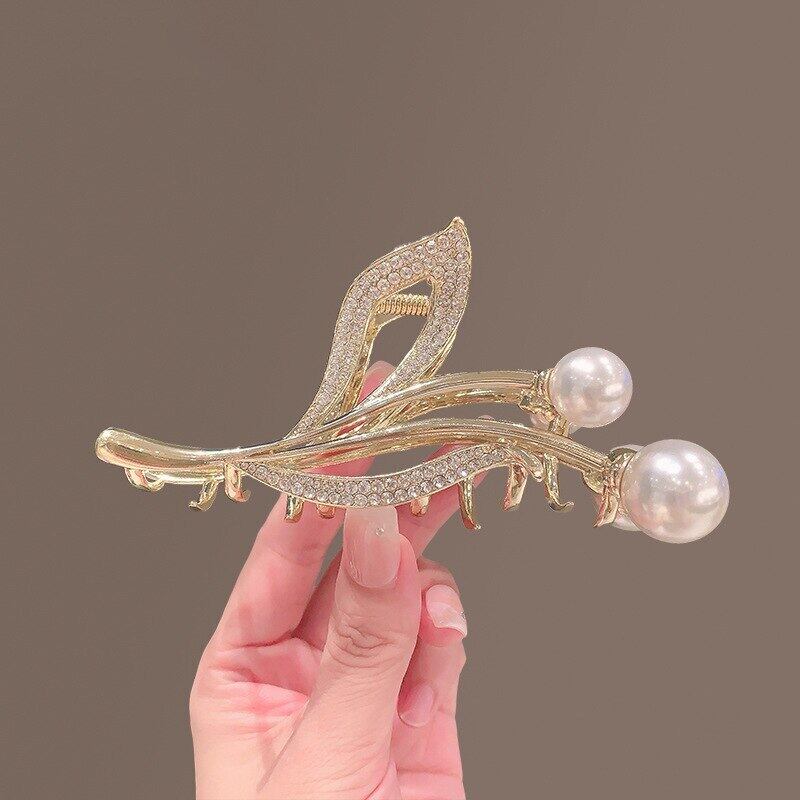 レトロパールラインストーングラブクリップガールカニヘアクリップヘアクロー大ヘアクリップサメクリップ頭飾りヘアアクセサリー 真珠 Wor68854859231