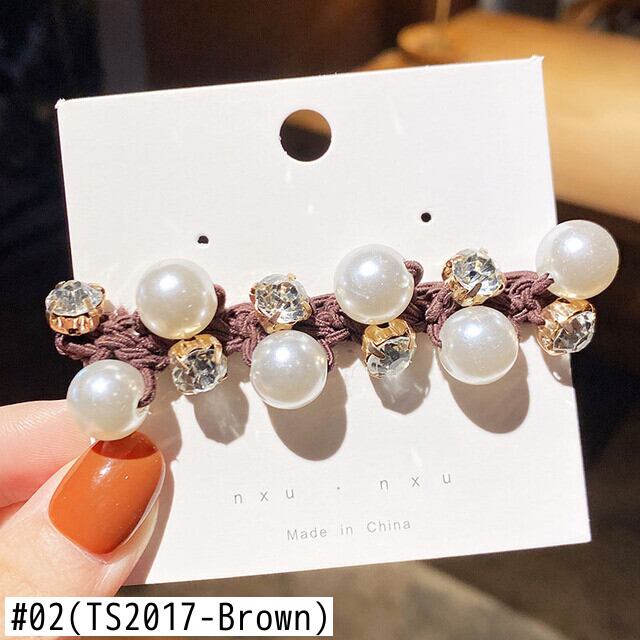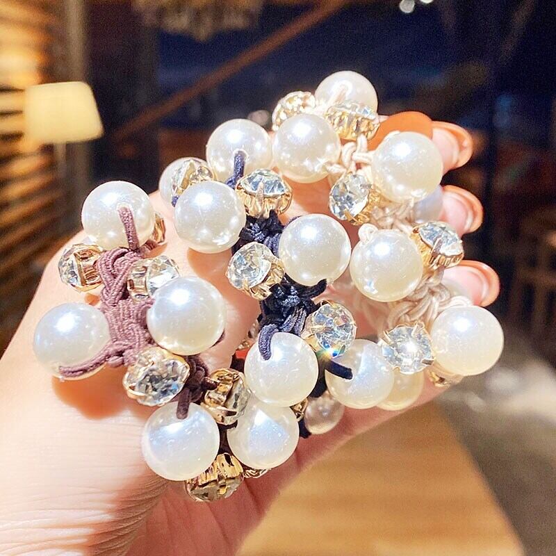 ヘアネクタイ女性真珠ラインストーンシュシュポニーテールホールドヘアバンドカチューシャヘアネクタイゴムバンドヘアアクセサリー パール Wor43887705505