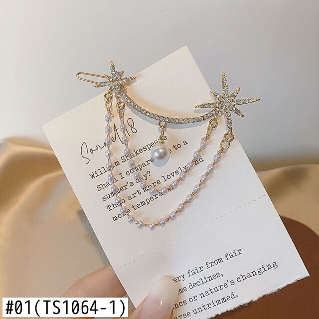 パールバレッタクリスタルラインストーン電話ヘアピン合金ペンダント帽子シンプルなヘアグリップヘアアクセサリー 真珠 Wor63801422127
