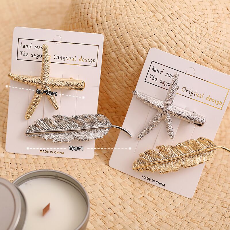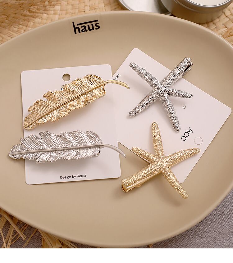 髪の爪 合金 バレッタ フェザー 葉形のヘアピン 幾何学クリップ スギナクリップ ヘアアクセサリー Wor73319039398