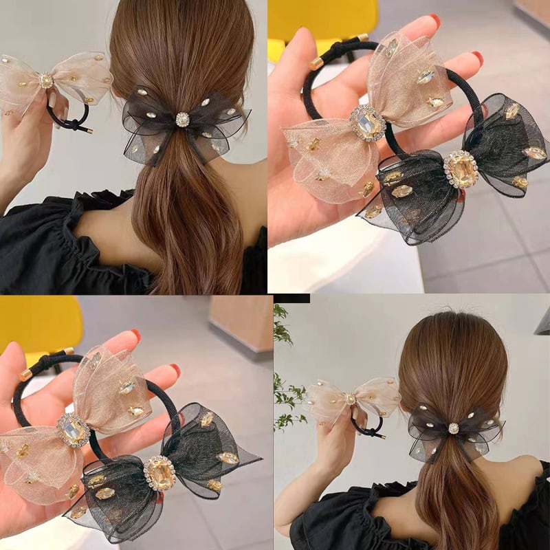 ラインストーン リボン ボウ ヘアフープ レディース ポニーテール ゴムバンド 伸縮性 ヘアバンド ヘアロープ エラスティック ヘアアクセサリー Wor82384206664
