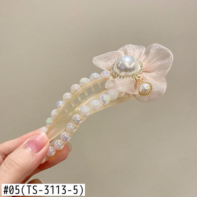 2022 スウィートパール弓の髪の爪無地ガール弓カモノハシクリップポニーテールヘアアクセサリーヘアクリップ リボン 大人ガーリー キュート カジュアル 真珠 ソリッドカラー Wor17006738413