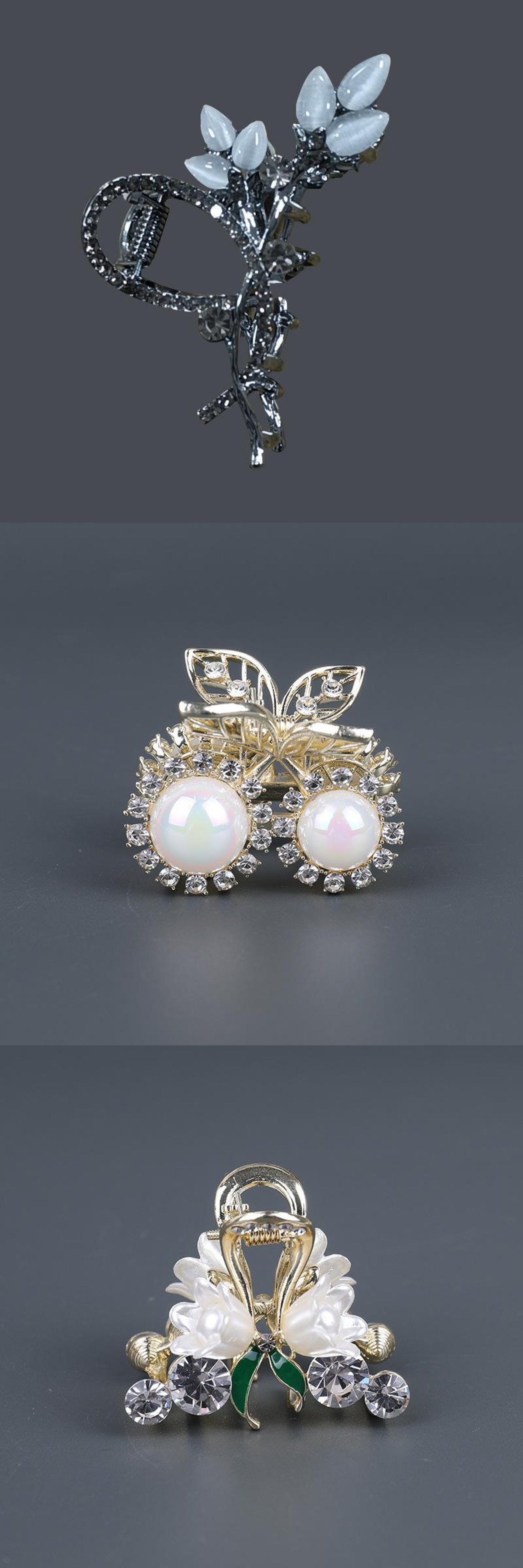 ブラックチェリースモールグラブクリップヘアクローバングヘアクリップパールメタルカニクリップスタイリングクリップ頭飾り 真珠 Wor75614273513