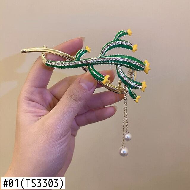サボテン パール ツイストクリップ シンプル ヘアクリップ付き ポニーテール 三つ編み ヘアアクセサリー 真珠 Wor11768445573