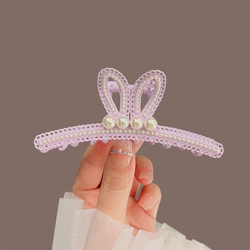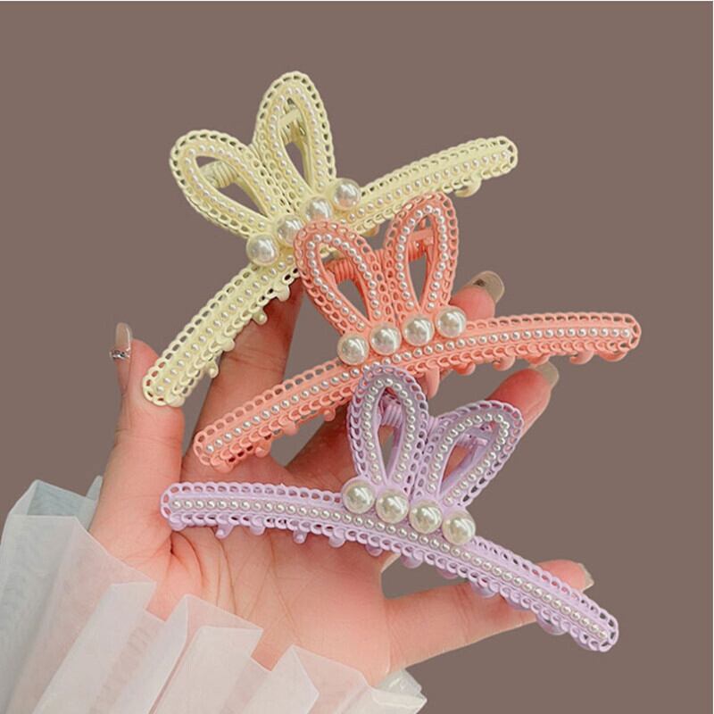 ウサギ耳パールヘアクリップスウィートガールポニーテール編組ヘアグリップクリップサメクリップヘアアクセサリー 大人ガーリー キュート カジュアル 真珠