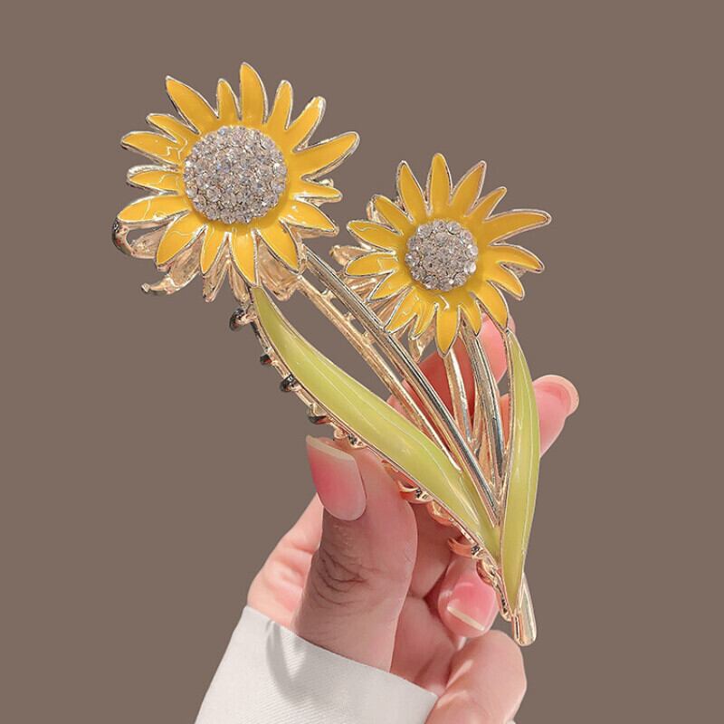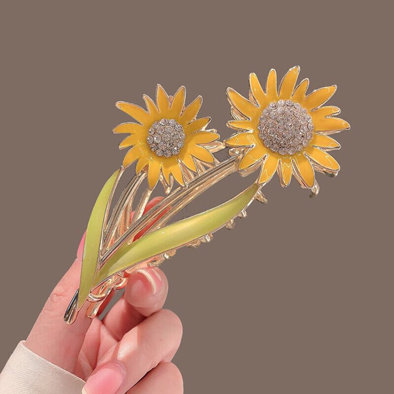 ラインストーンひまわりグリップクリップヘアグリップサメクリップヘアカードガールポニーテールクリップヘアアクセサリー フラワーデザイン