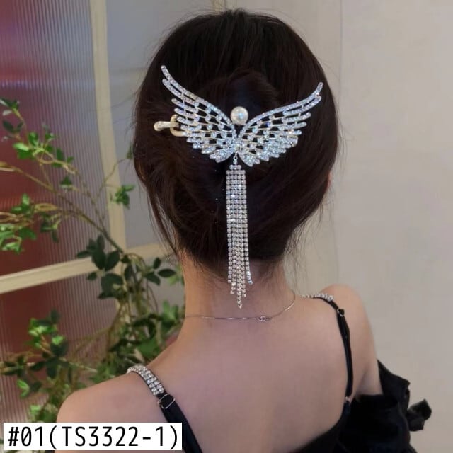 ラインストーン天使羽電話ヘアクリップポニーテール三つ編みクリップツイストクリップ頭飾りヘアアクセサリー