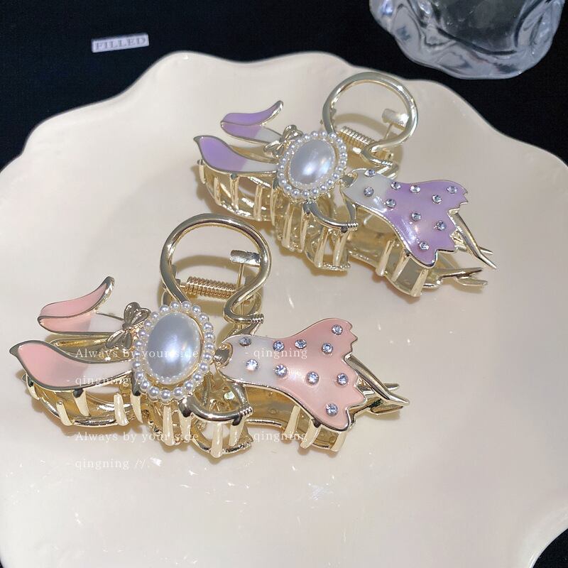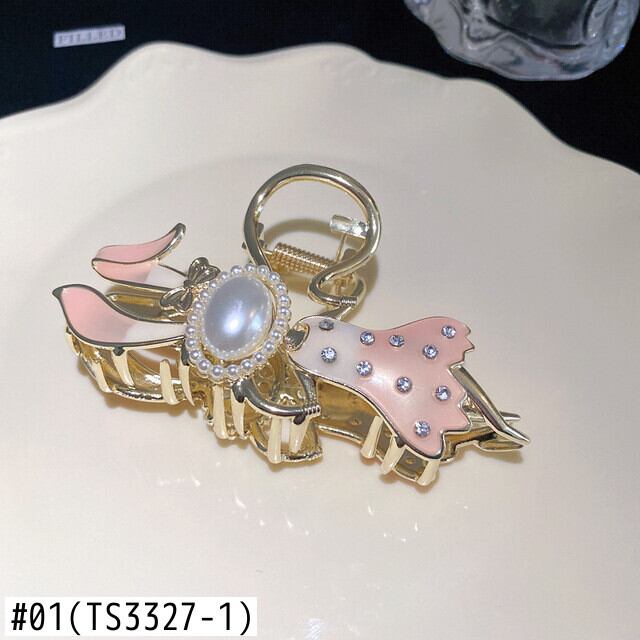 サマーパールラビットグラブクリップポニーテールクリップメタルカニヘアクリップレトロヘアアクセサリー 夏物 真珠